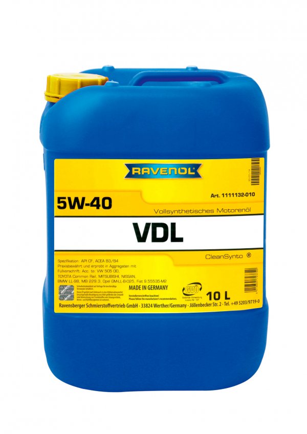 RAVENOL VDL SAE 5W-40 is a full synthetic, low-friction engine oil with CleanSynto® Technology for passenger car diesel engines with or without turbo-charging and direct injection.