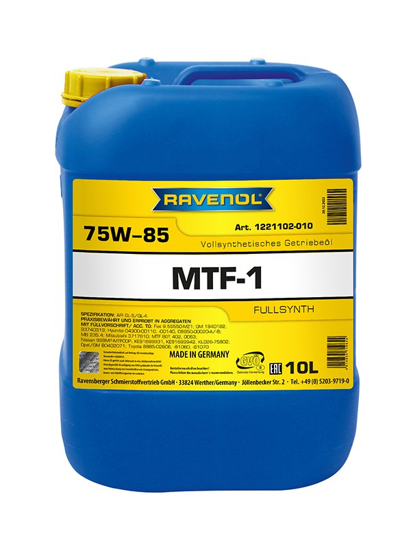 RAVENOL MTF-1 SAE 75W-85 ist ein vollsynthetisches Leichtlauf-Getriebeöl auf PAO-Basis für spezielle Schalt-, Verteiler- und Differentialgetriebe.