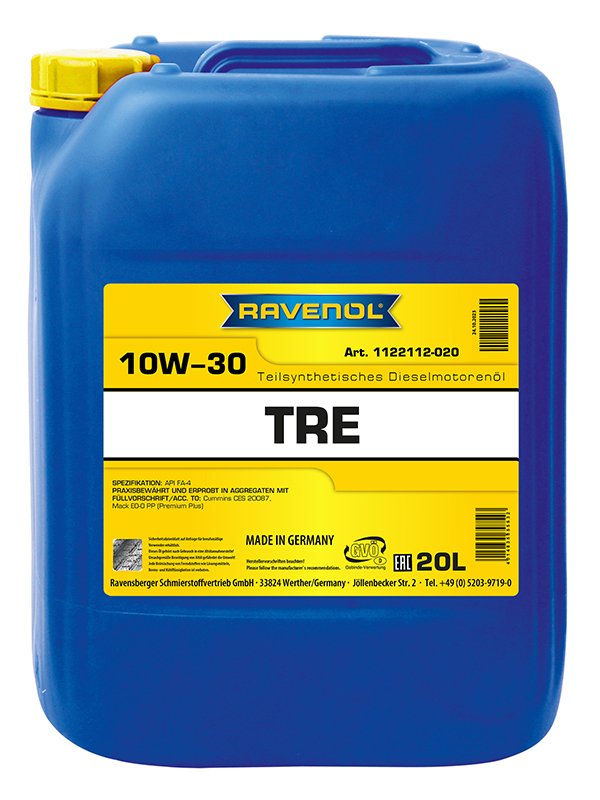 RAVENOL TRE Truck Resource Conserving SAE 10W-30 ist ein teilsynthetisches Fuel Economy Longlife Mehrbereichs- Motorenöl mit einer HTHS-Viskosität zwischen 2,9 cP und 3,2 cP, das speziell für die neueste Generation von Turbodiesel-Nutzfahrzeugmotoren entwickelt wurde.