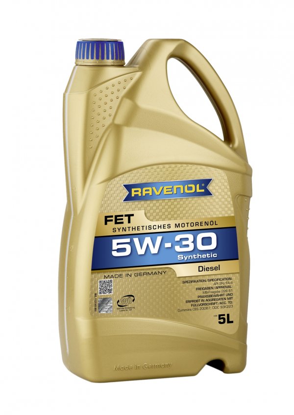 RAVENOL FET Fuel Efficiency Truck SAE 5W-30 wird von den Motorenhersteller als Ganzjahres- Mehrbereichs- Motorenöl für die Anwendung in Motoren mit Abgasnachbehandlungssystemen in der Viskositätsklasse SAE 5W-30 in hoch beanspruchten Nutzfahrzeug-Dieselmotoren eingesetzt.