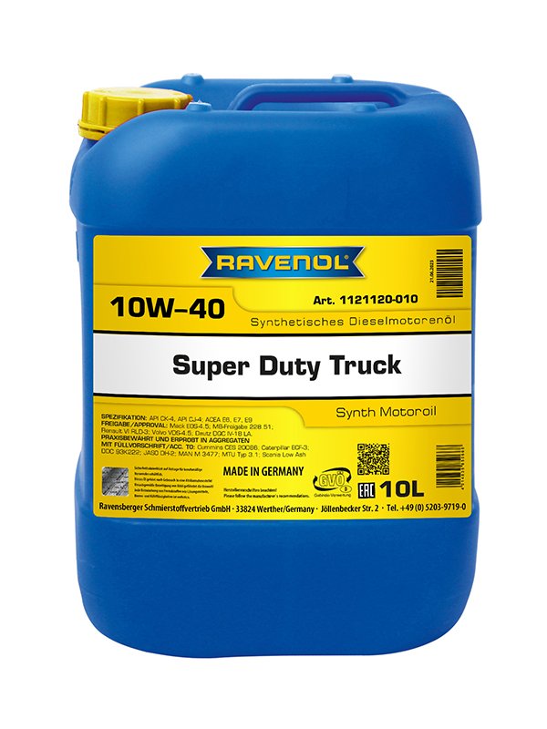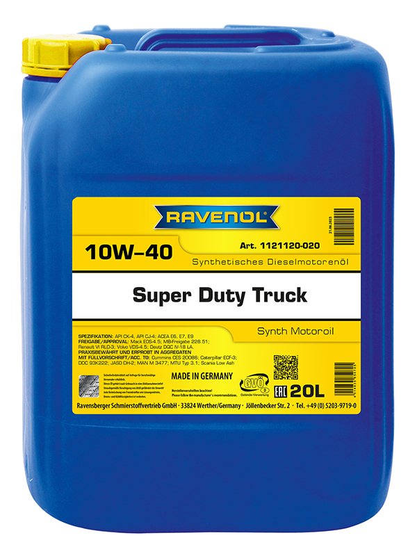 RAVENOL SDT Super Duty Truck SAE 10W-40 ist ein synthetisches Kraftstoff sparendes „Low SAPS“ LKW-Motorenöl auf Basis der neuesten Additiv-Technologie mit sehr speziellen Grundölen. Es wurde speziell für Dieselmotoren unter schwersten Einsatzbedingungen zu allen Jahreszeiten entwickelt. Ausgezeichnete Eignung für die Verwendung in EURO 2, EURO 3, EURO 4, EURO 5 und EURO 6 Motoren in Kombination mit Dieselkraftstoff bis 500 ppm Schwefelgehalt.
